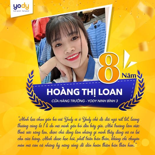 YODY xin chào. Mình là Hoàng Thị Loan – Cửa hàng trường YODY Ninh Bình 3. Ngày trước, mình ứng tuyển vào YODY chỉ vì tình cờ thấy thông báo tuyển dụng ở cửa hàng YODY 165 LƯƠNG VĂN THĂNG, vậy mà không ngờ lại gắn bó với YODY lâu như vậy.