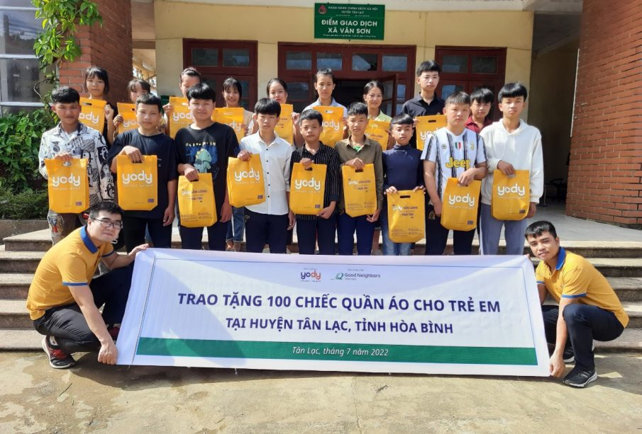 Ngày 16/07/2022, YODY đã trao tặng 100 sản phẩm cho trẻ em của huyện Tân Lạc, Hoà Bình. Dự án thiện nguyện “YODY – Chung tay vì cuộc sống xanh” vẫn đang được hoạt động mang ý nghĩa mang những sản phẩm của YODY với chất liệu tốt tới các trẻ em vùng cao.